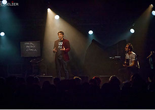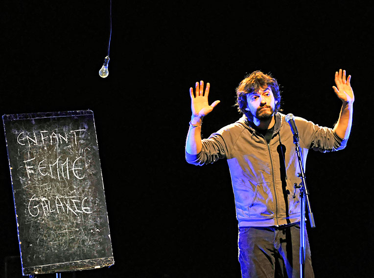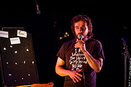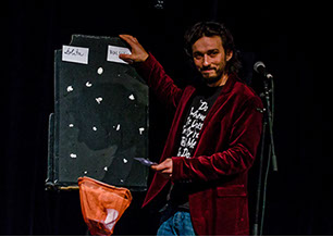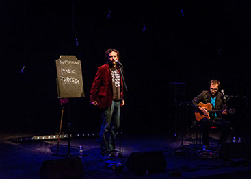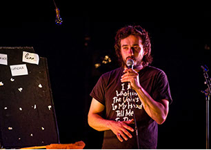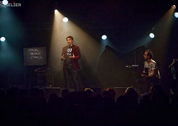 Fort de différentes expériences artistiques, entre comédien et auteur, chanteur parfois slameur, Arthur RIBO commence à imaginer une forme nouvelle de spectacle où textes, chansons et histoires sont créés à vue, à partir des mots écrits par le public au marqueur sur des cartons distribués à l’entrée.