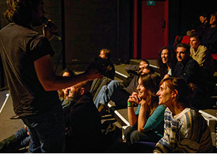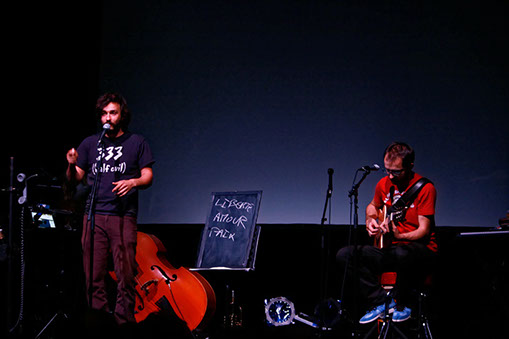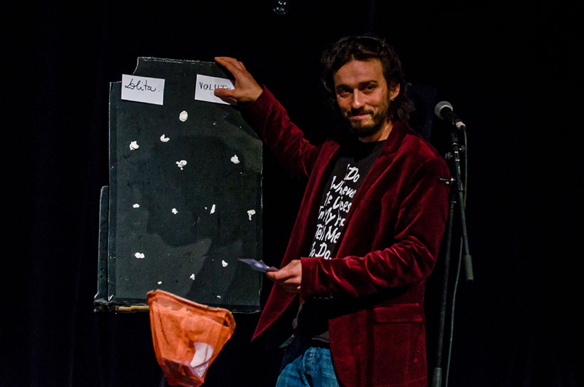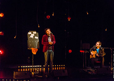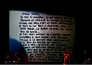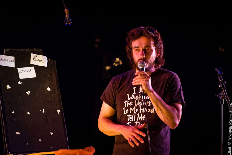 Un happening textuel et vocal où toute proposition, réaction du public est immédiatement inscrite dans le spectacle.