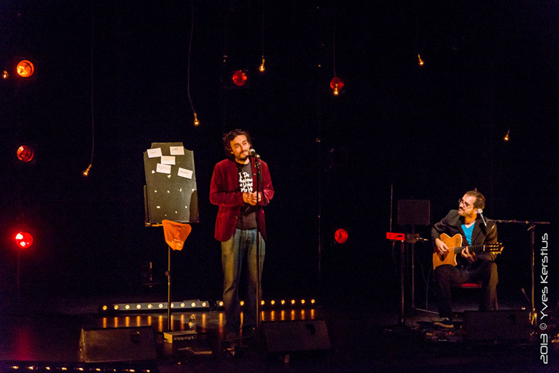 Original, surprenant, étonnant, détonnant, désarmant ! Des mots, des histoires, la vie quotidienne, un cri de révolte et d'espoir et un virtuose certain sur un nuage d'amour. Spectacle interactif, puisque le public choisit les thèmes et les artistes improvisent. Place à la magie des mots ! - Le courrier Picard