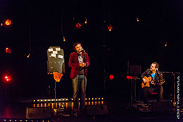 Pour accompagner ces textes et ces mots, le compositeur multi-instrumentiste Victor Belin, compose en direct et à vue à partir des objets, des murs, du sol, du lieu qu’il investit et de ses instruments. La couleur musicale change au gré des histoires qui se créent. Un happening musical ou même les bruits du public peuvent être samplés et servir parfois à la construction d’un morceau. Un travail ludique qui revisite tous les genres musicaux.