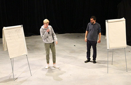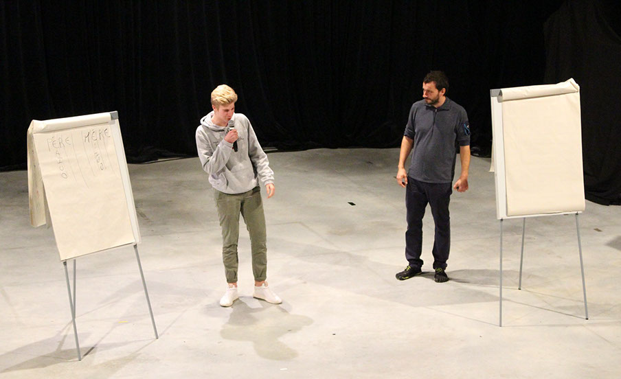 3ième temps: le spectacle proprement dit avec les participants aux maser class, qui peut être mélangé à un autre public adolescent captif. Durée minimum conseillée : 1h30.