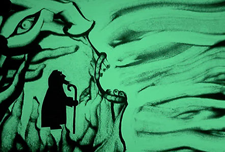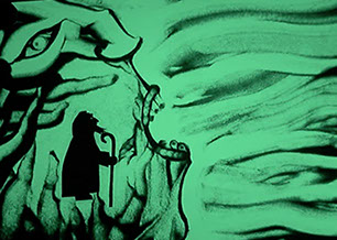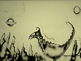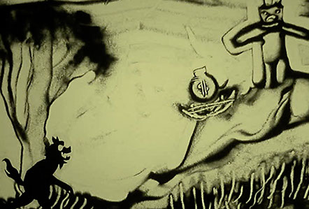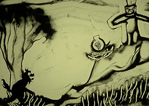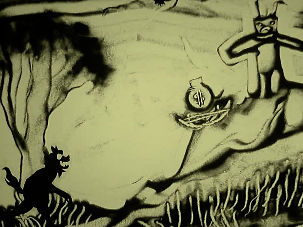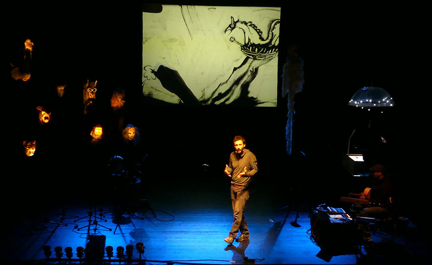 Un espace ludique, magique et interactif, où l’univers de la salle (lumière, musique) réagit à leurs désirs et propositions. L’histoire se déroule et s’écrit avec eux. Il y a, bien sûr, un univers de départ, une galerie de personnages suspendus, qui attendent qu’on leur donne un prénom et une fonction pour raconter un bout de l’histoire ; et il y a aussi, le dessin en direct capable de figurer en quelques traits une situation ou un personnage inattendu.